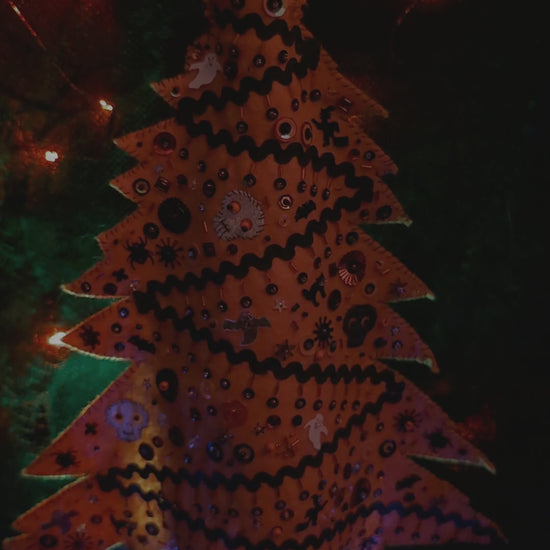 The finished tree stands about 14" tall and 12" wide and glows with vintage charm, making it a perfect addition to your Halloween décor or as a handmade keepsake.