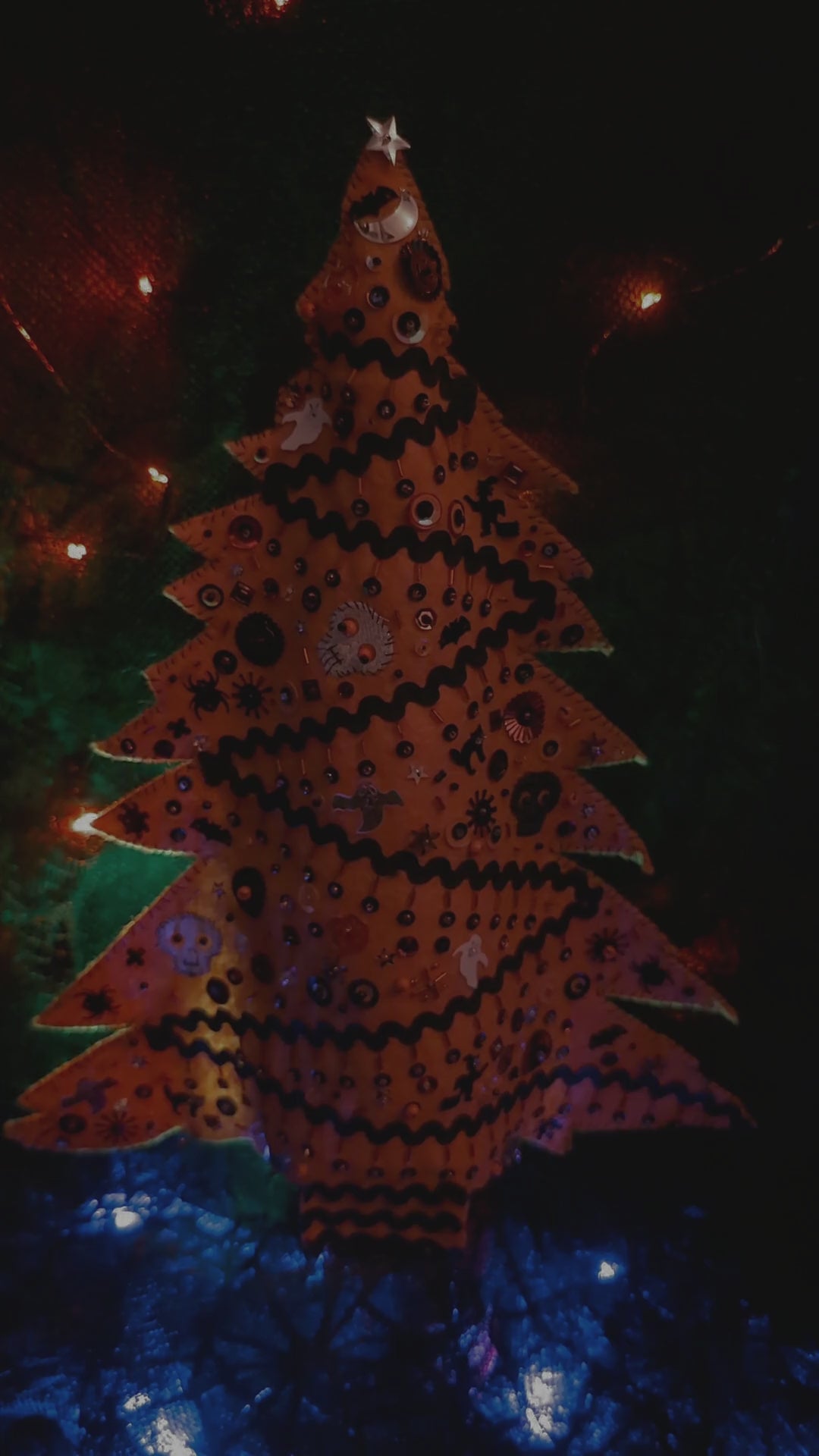 This design began as a rare treasure I found at an estate sale—a handmade sequined tree with the original pattern and a note from Grandma Nelson to Cindy. Inspired by that discovery, I reimagined her design with my own Halloween twist, giving it a spooky sparkle she might never have dreamed of. 🎃✨